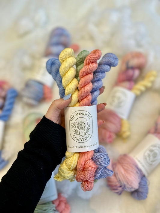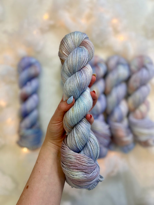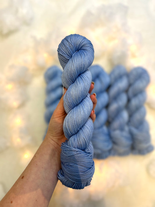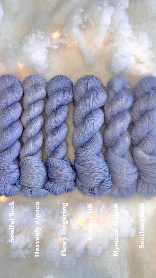 The Meet me in the clouds collection Bluebell is open for pre order from Wednesday February 4th 2026 until Sunday February 15th 2026, after which the processing time of approximately 8 weeks starts. The exact processing time will be announced on my Instagram account. A pre order means that your order will be dyed during those weeks and after then shipped out to you ready to be turned into the loveliest knit and crochet pieces.