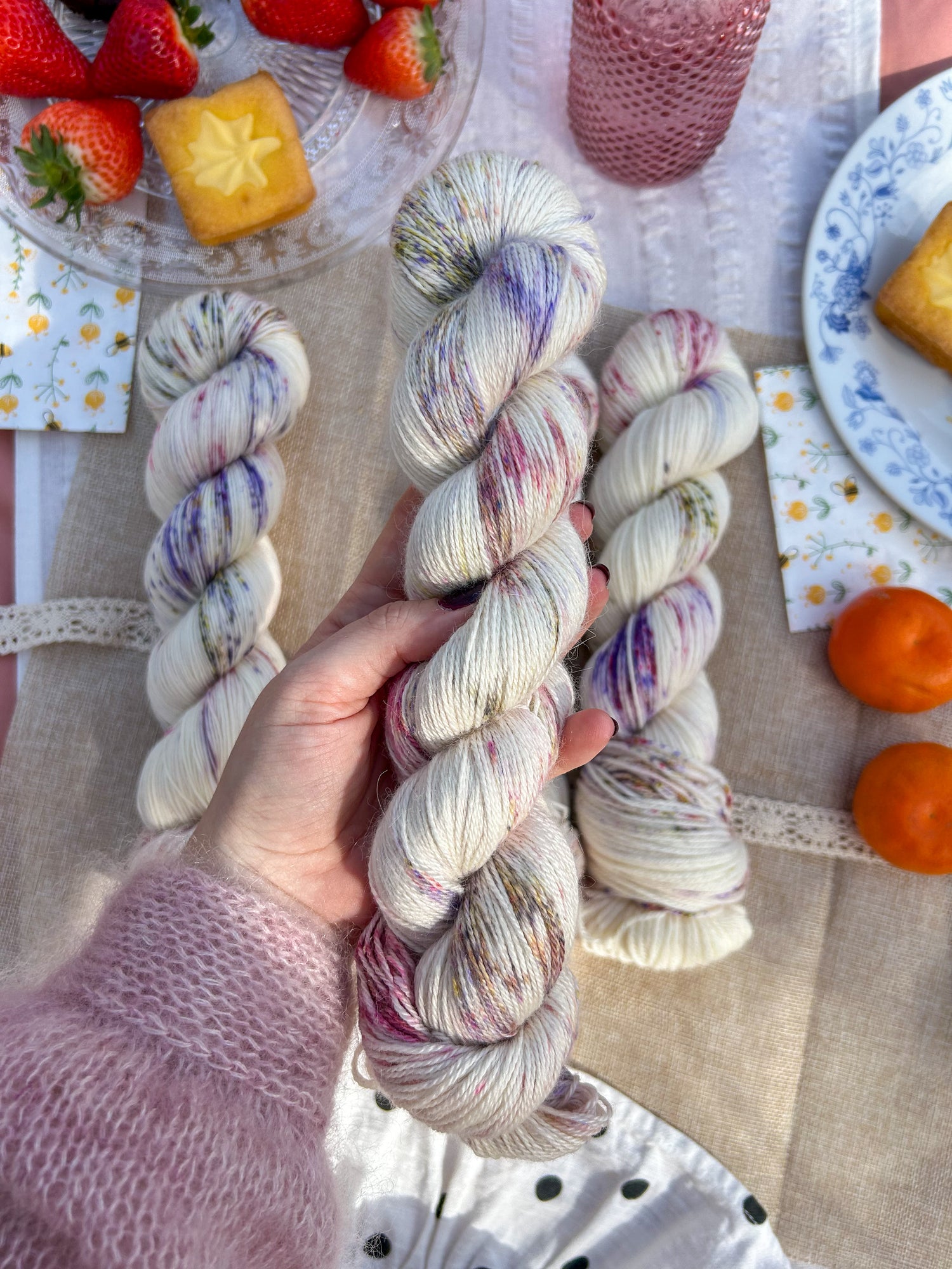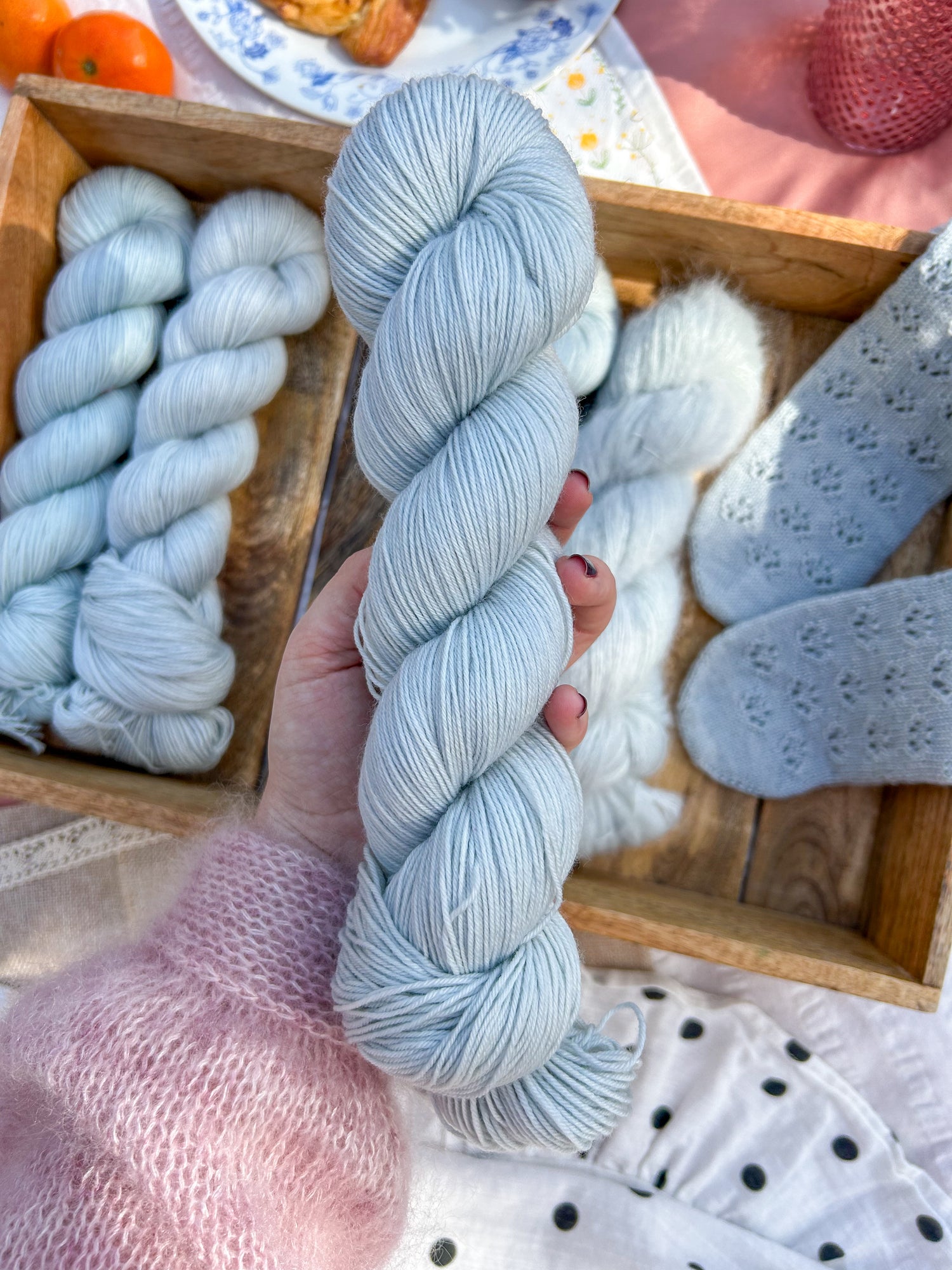 Soft silk DK is a 2025 limited edition summer base. This 50/50 blend has gorgeous drape and shine and is shines most in stockinette or a simple textured stitch. Soft silk DK is a lovely summer alternative for a DK weight yarn.