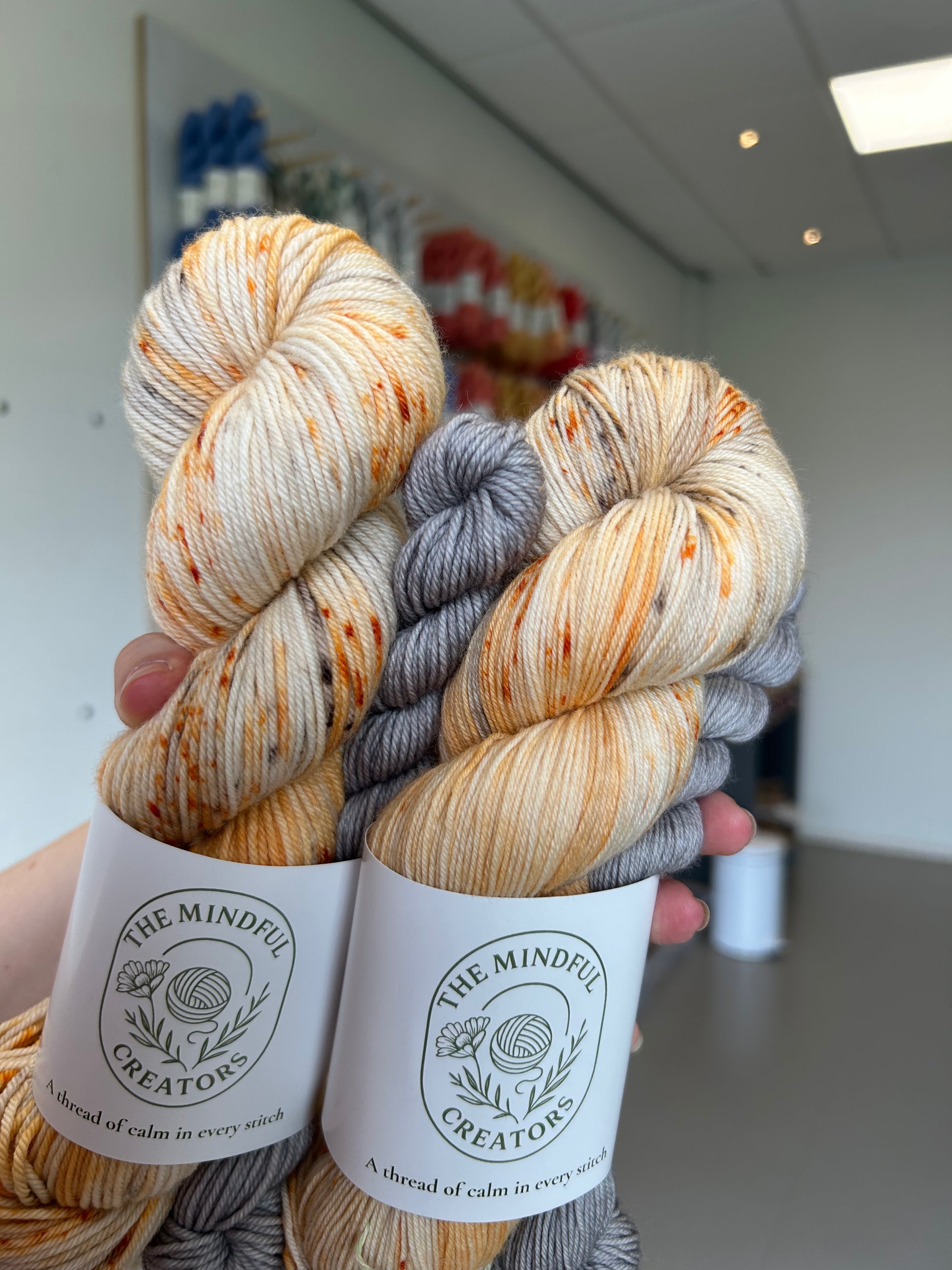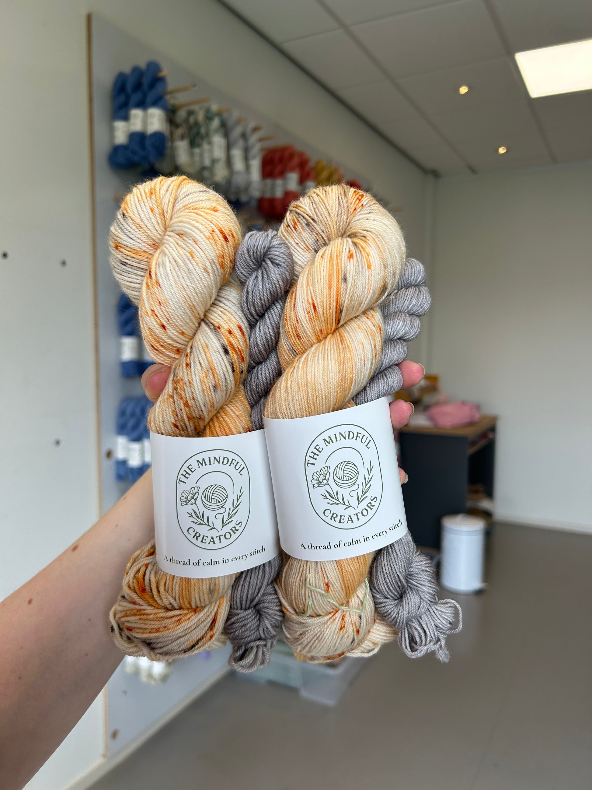 Door de aard van handgeverfd garen kunnen sommige van deze garens tijdens de eerste wasbeurt uitlopen. Zorg ervoor dat u de projecten afzonderlijk met de hand wast in koud water.