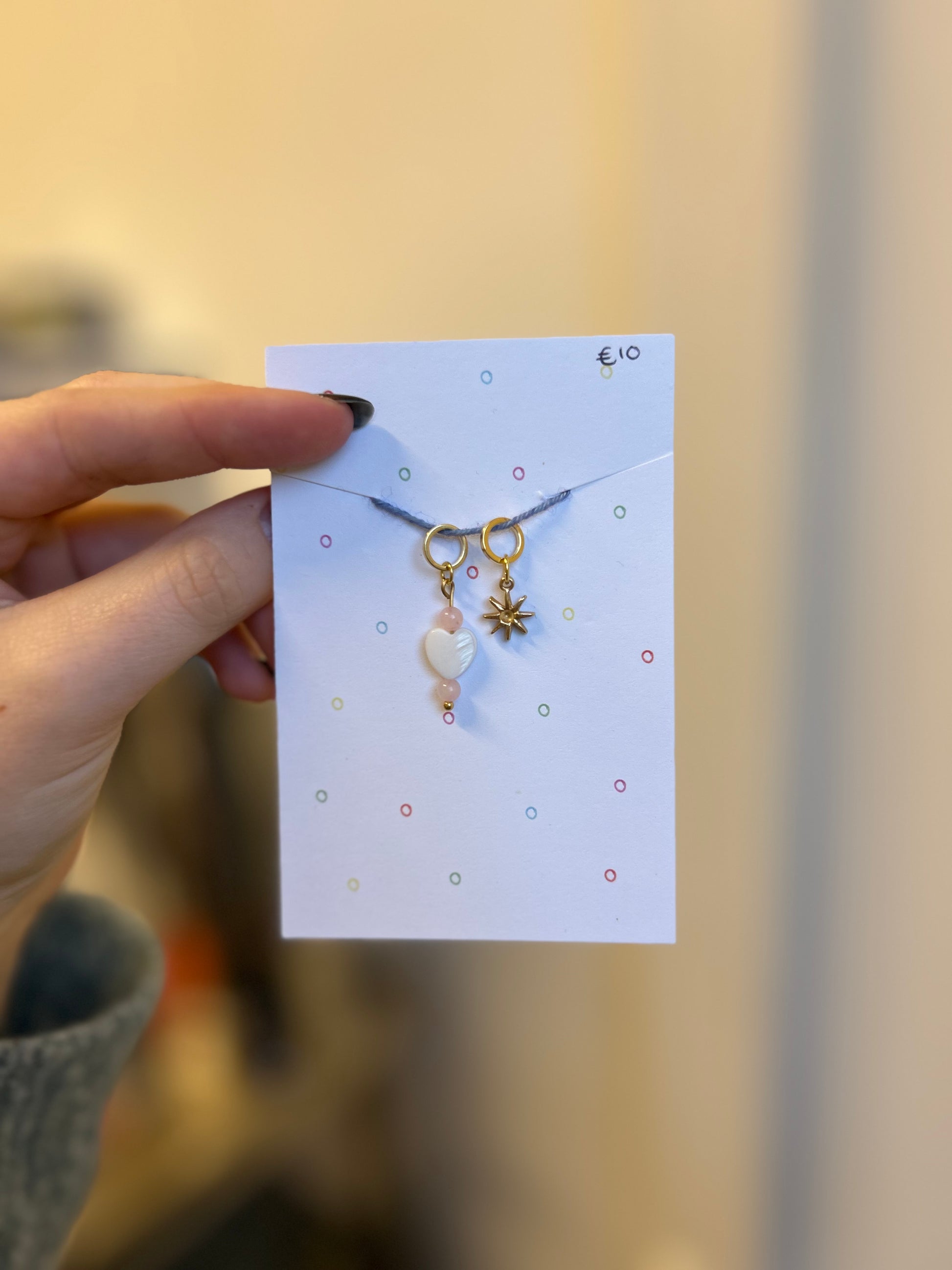 This stitch marker set consists of two closed stitch markers. These markers are perfect for sock knitting or small needle projects. They add a fun dainty addition to your knits.