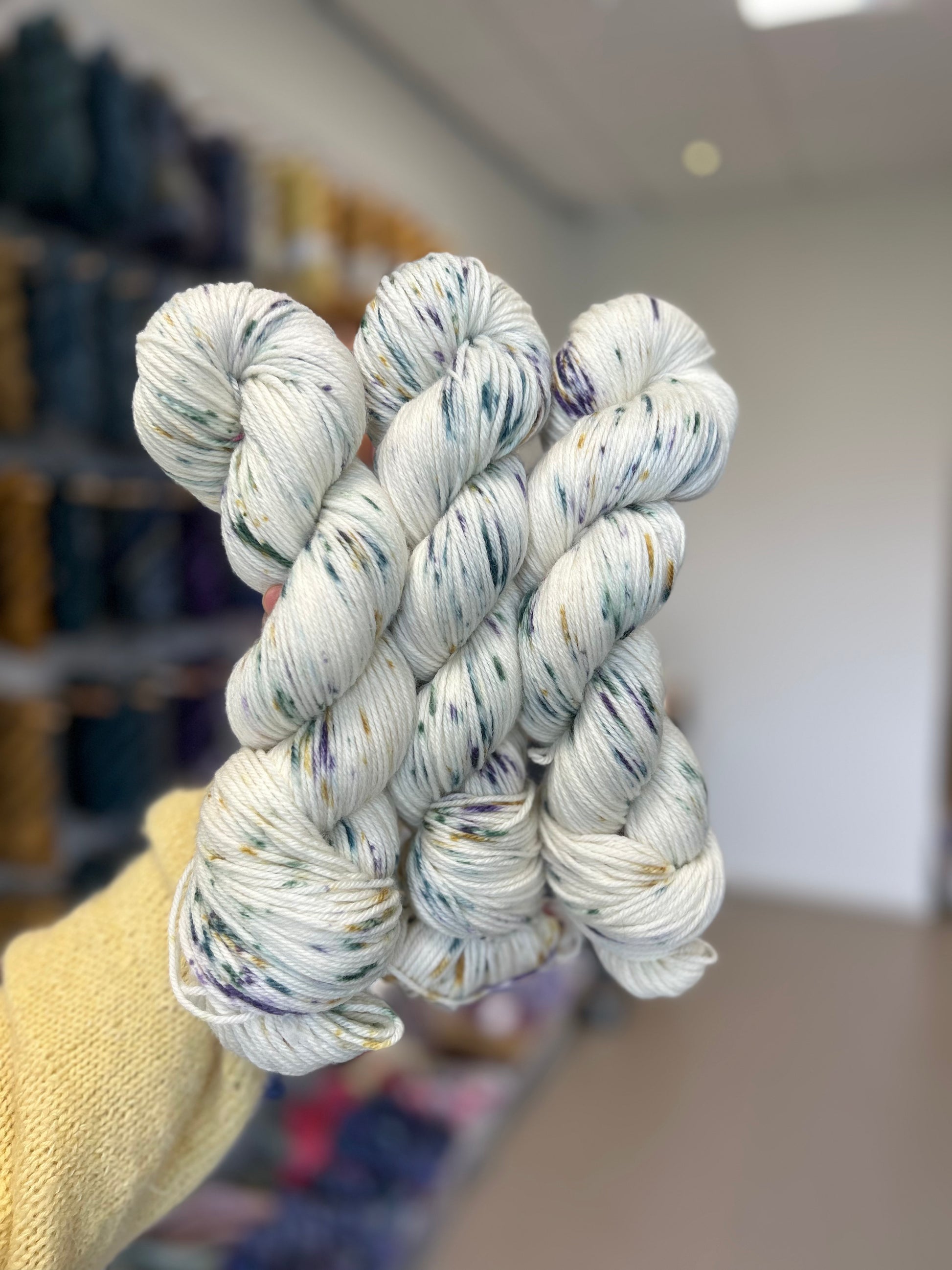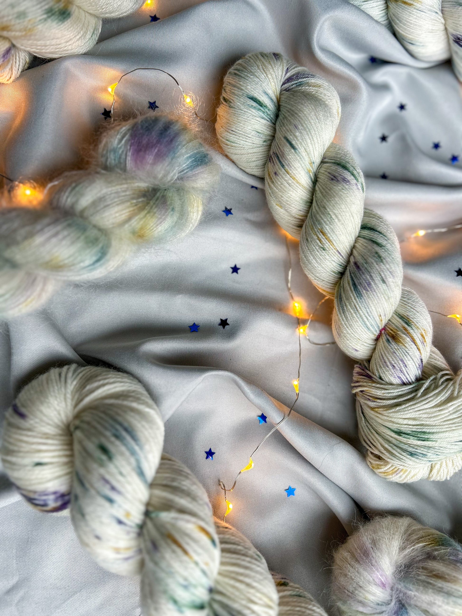 This color is perfect as a main color for colorwork or on its own for a touch of subtle fun. Its soft speckles makes it versatile and stunning across all bases.