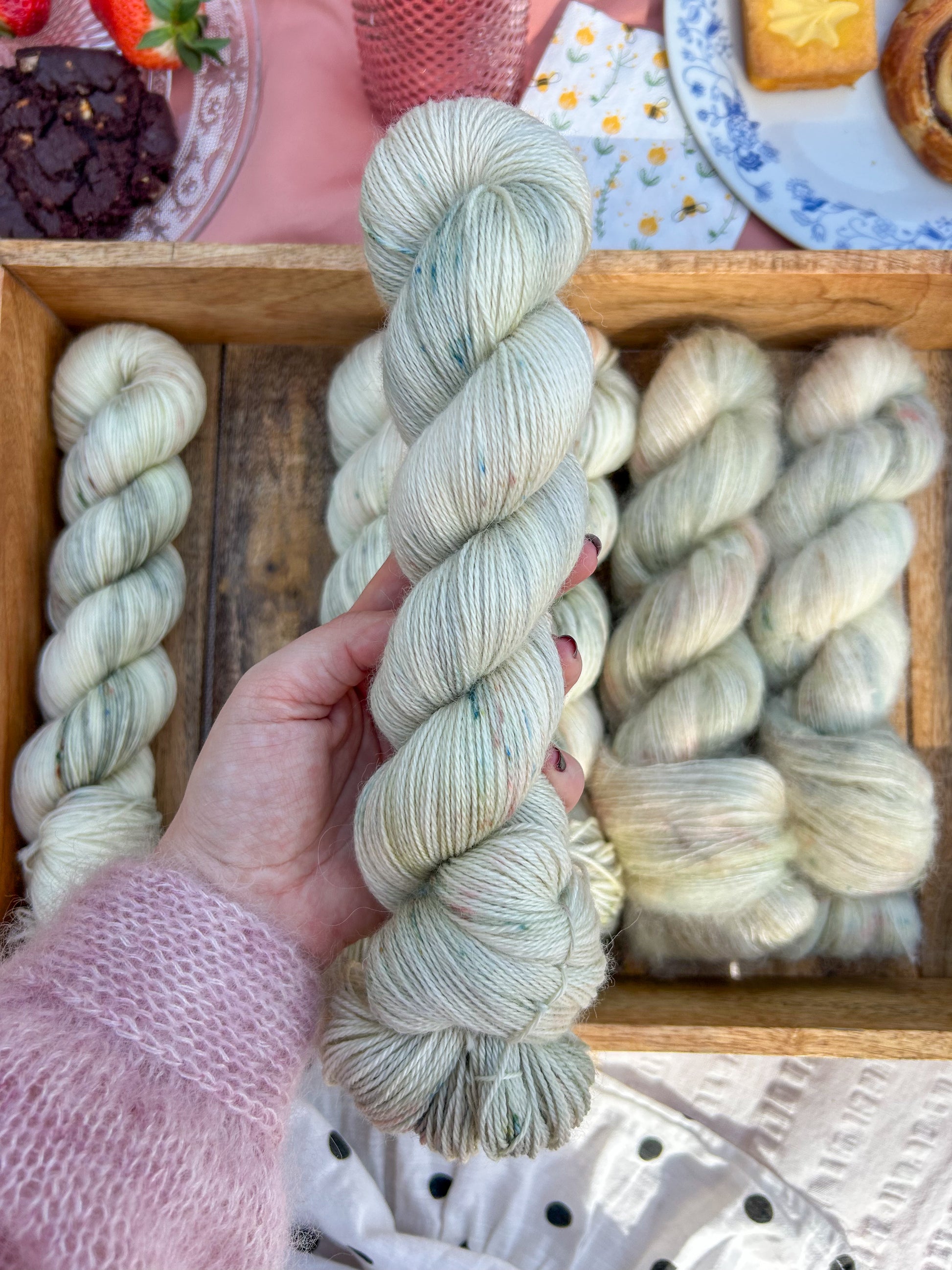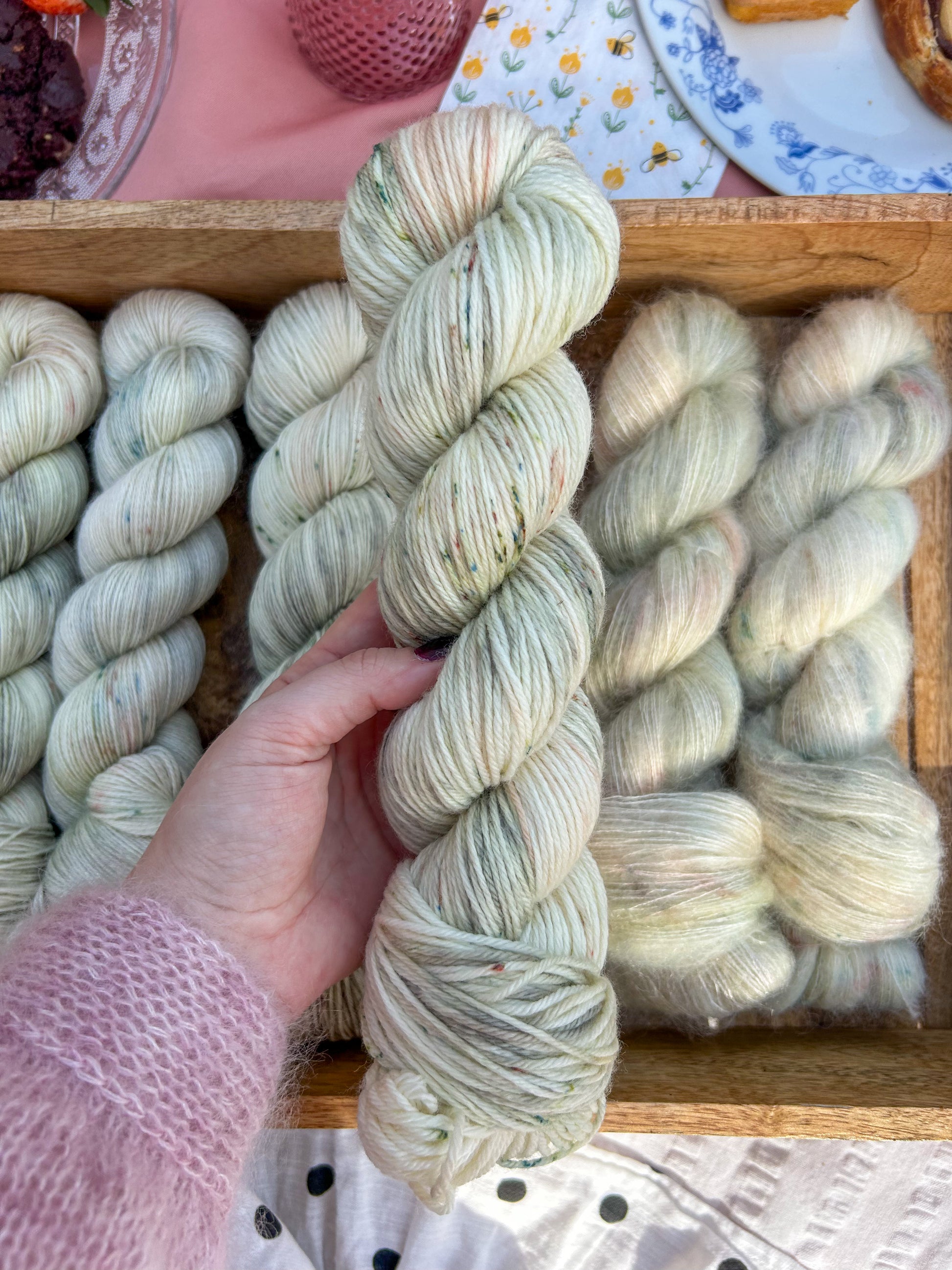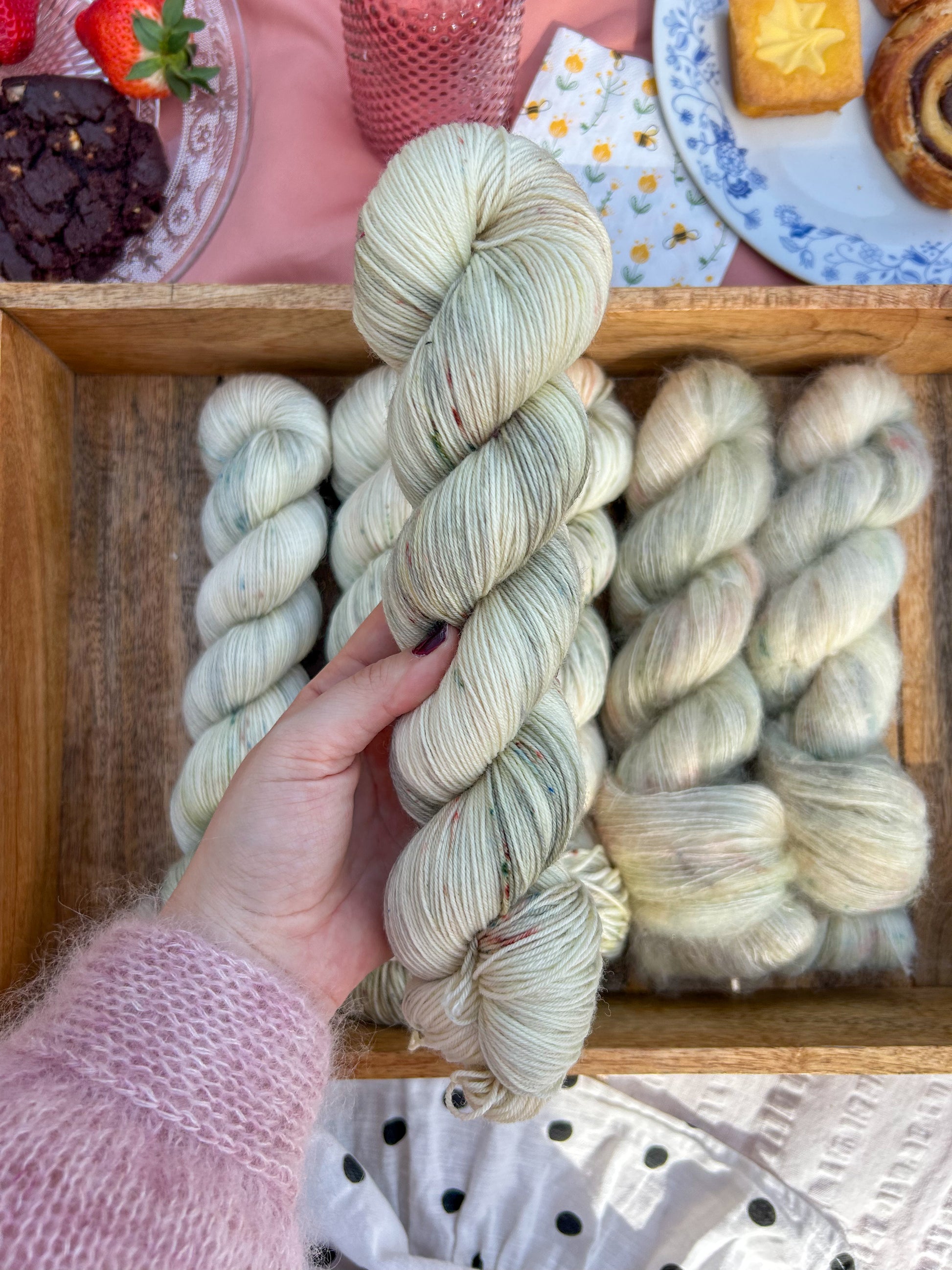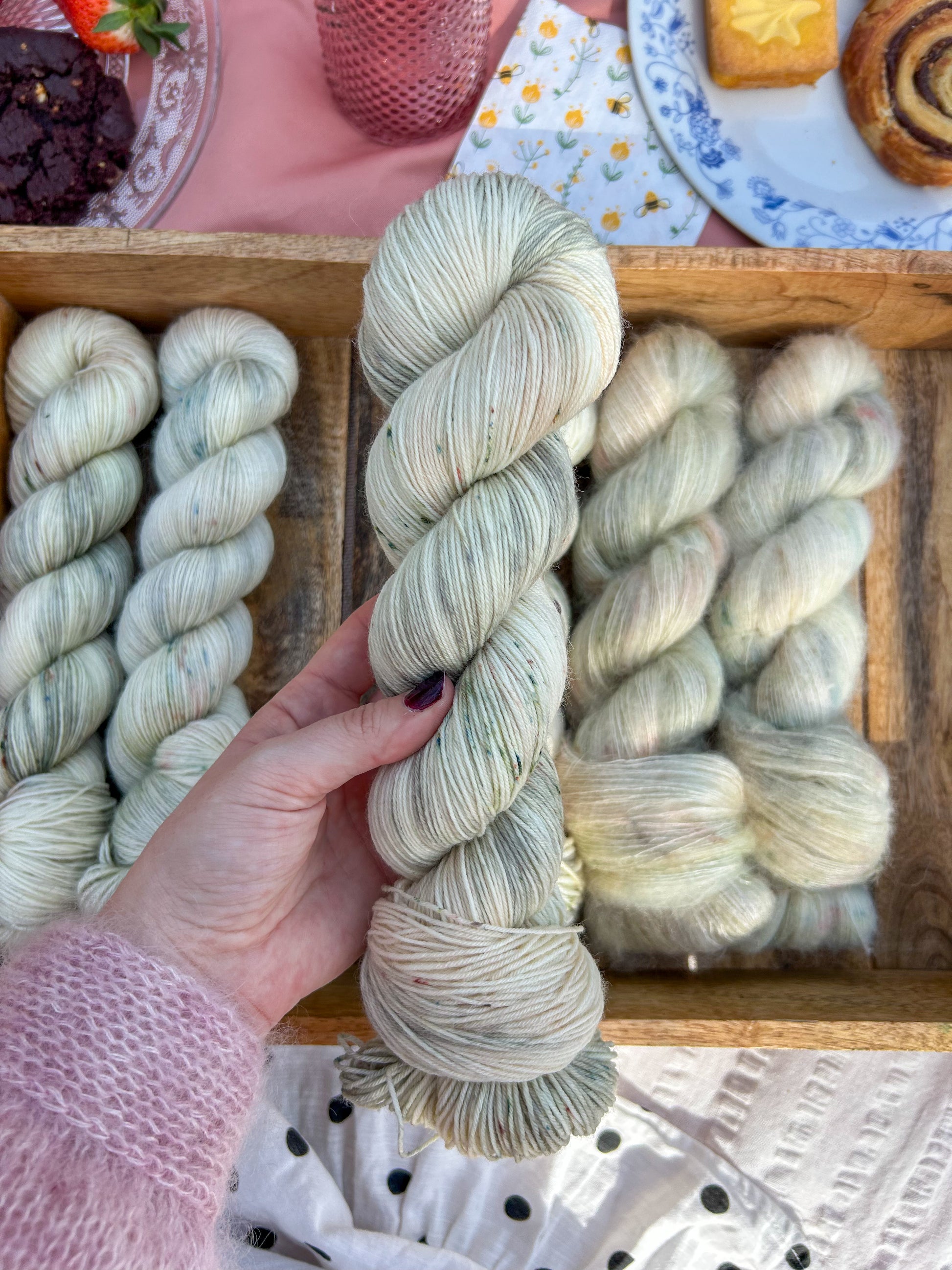 What’s a picnic without a sweet treat right? Some might recognize cheesecake al pistachio since it was the full skein color of the Gelateria Italiana advent. I just had to bring this color into a collection cause I think it deserves a full moment to shine. 🤭