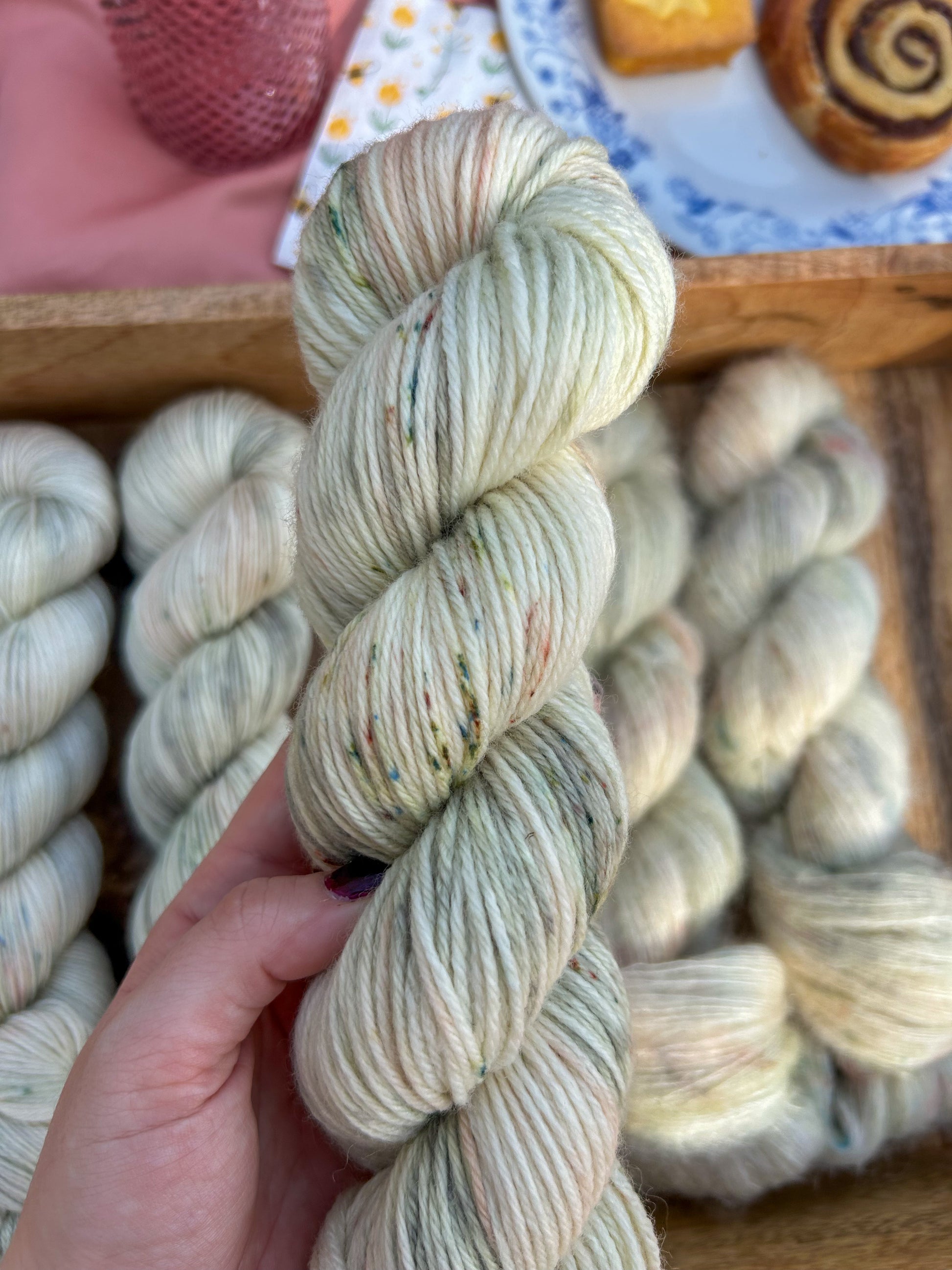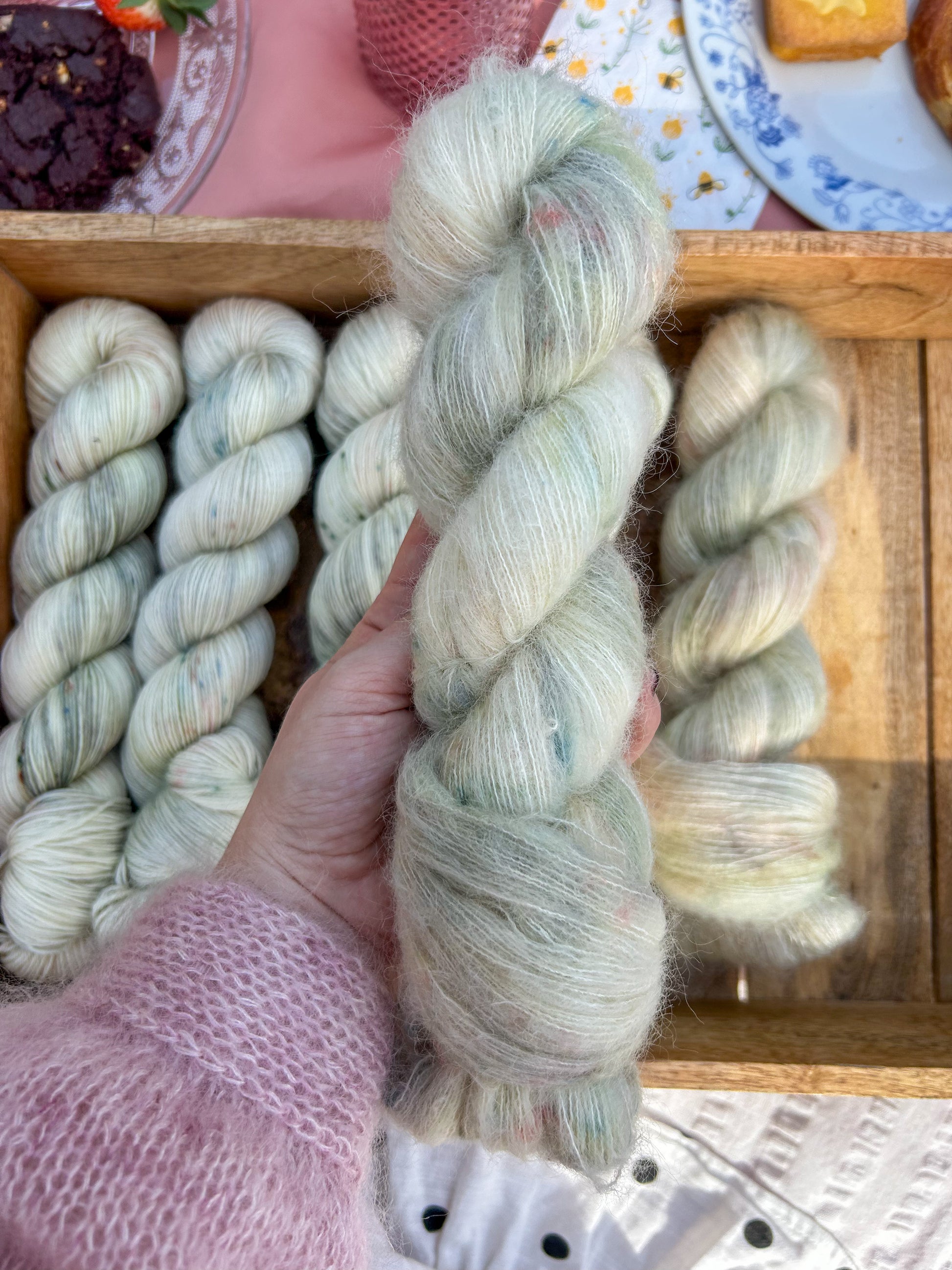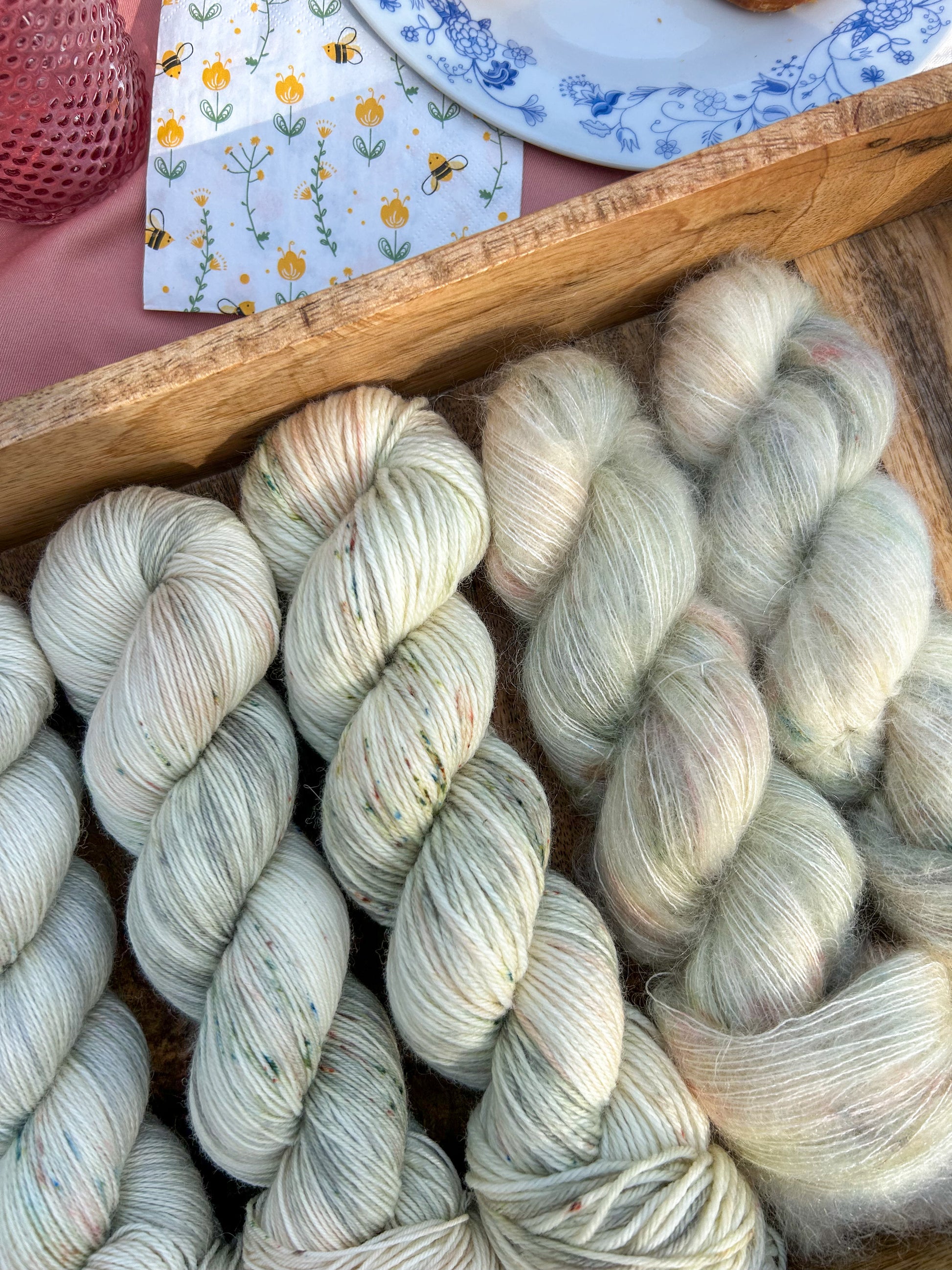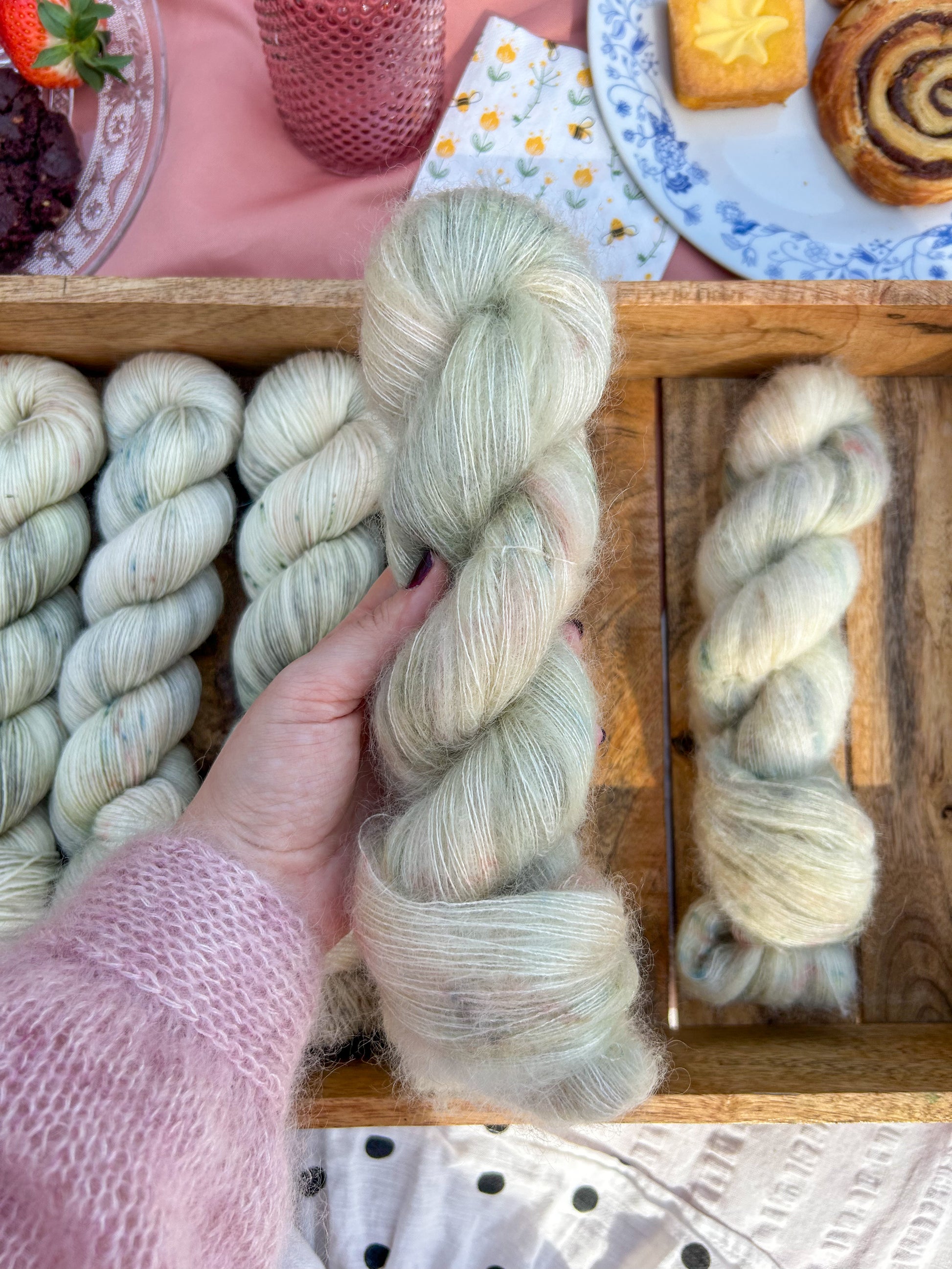 What’s a picnic without a sweet treat right? Some might recognize cheesecake al pistachio since it was the full skein color of the Gelateria Italiana advent. I just had to bring this color into a collection cause I think it deserves a full moment to shine. 🤭