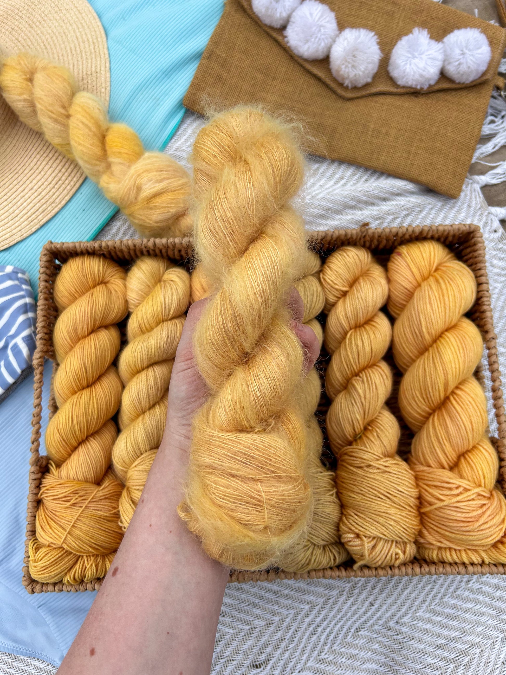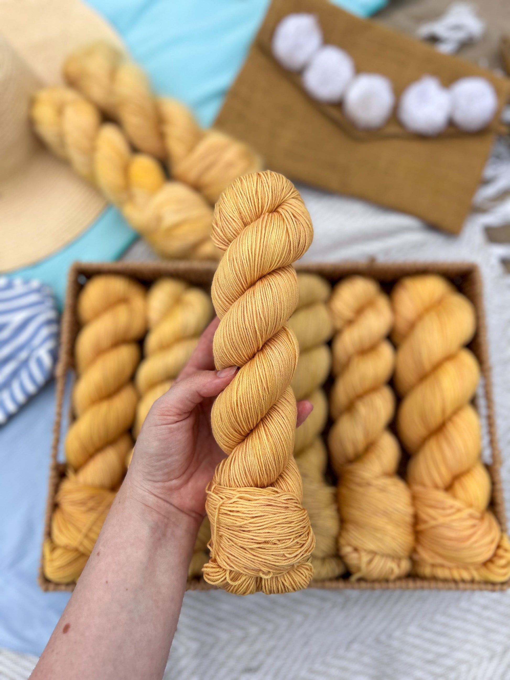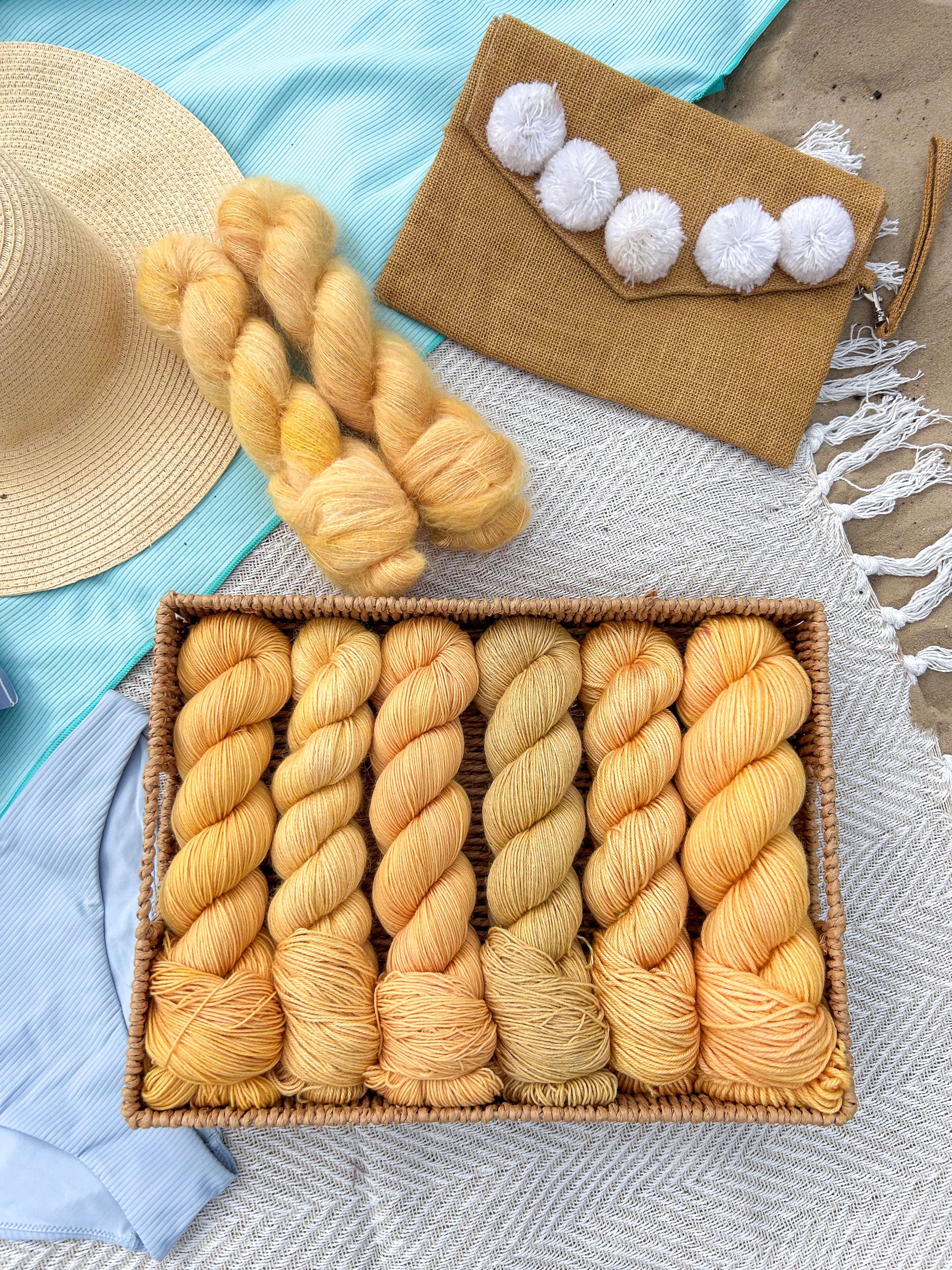 Golden hour is a warm gold that shines on its own or pairs beautifully in a striped project. Itβs the color of slow days and sunset light you never want to end. It pair beautifully with Island blush and Coral reefs.Β