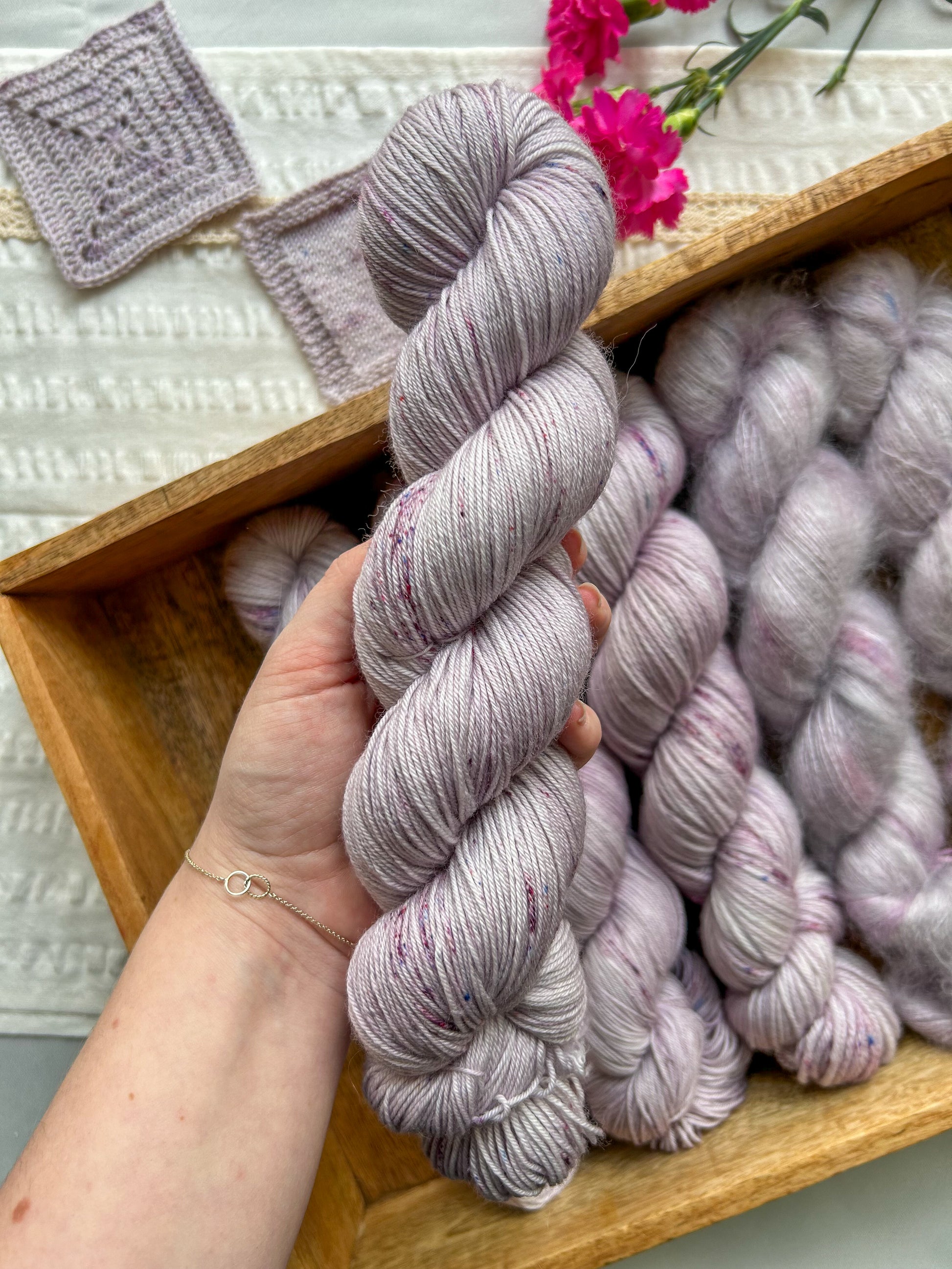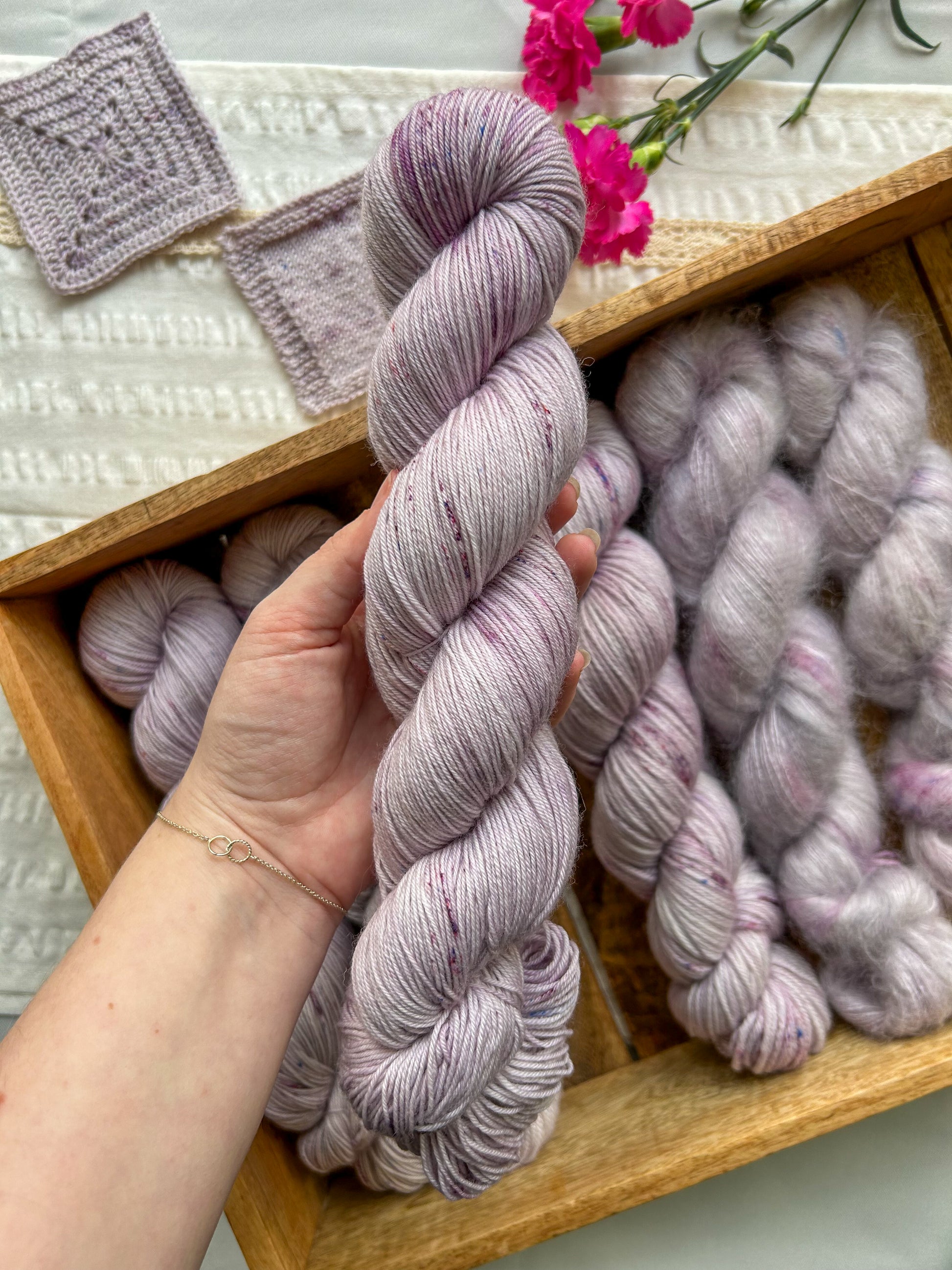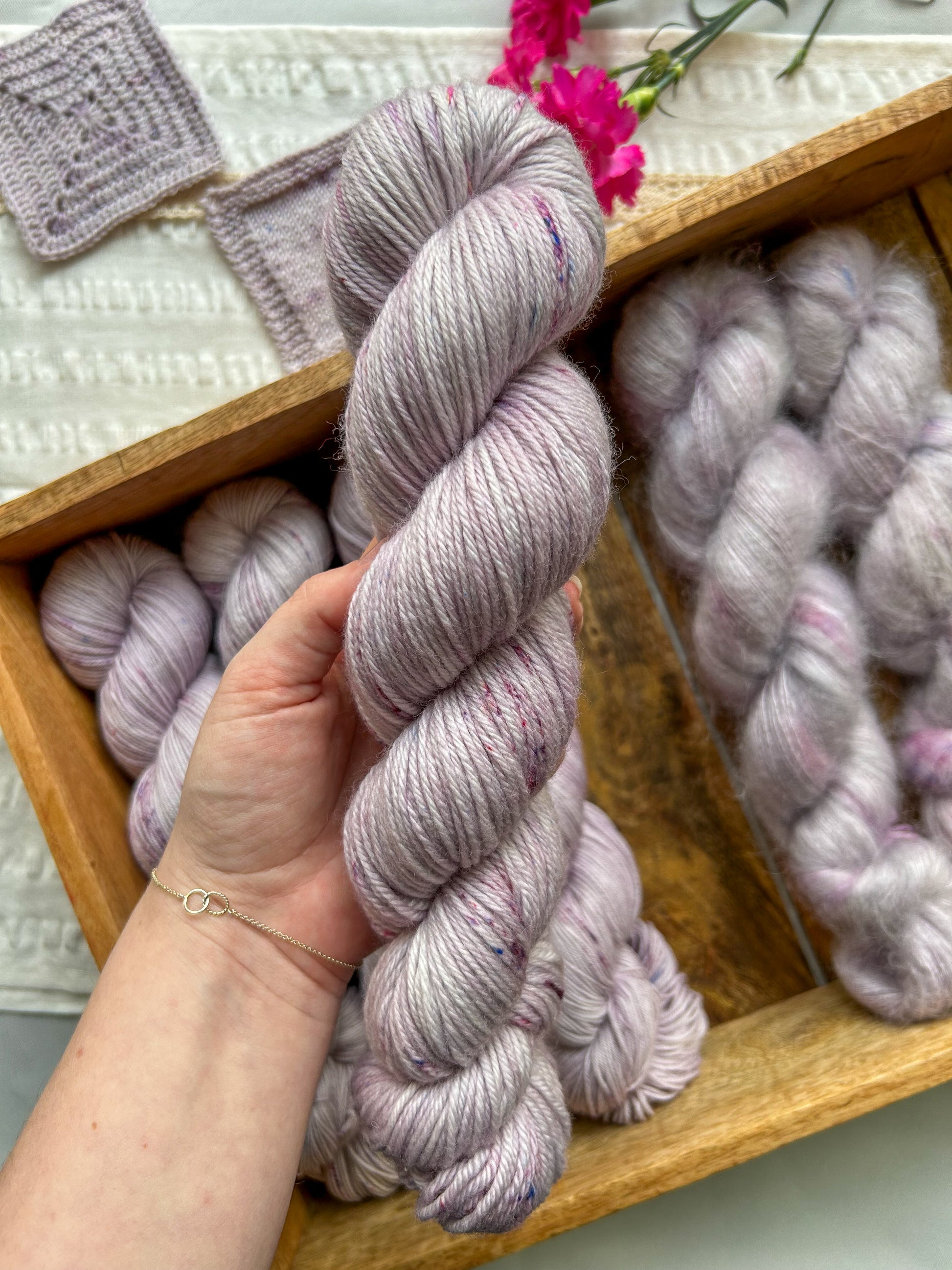 During the dye process, I try my hardest to make all the skeins as similar as possible but since this is a handmade product this also means that every skein is one of a kind.