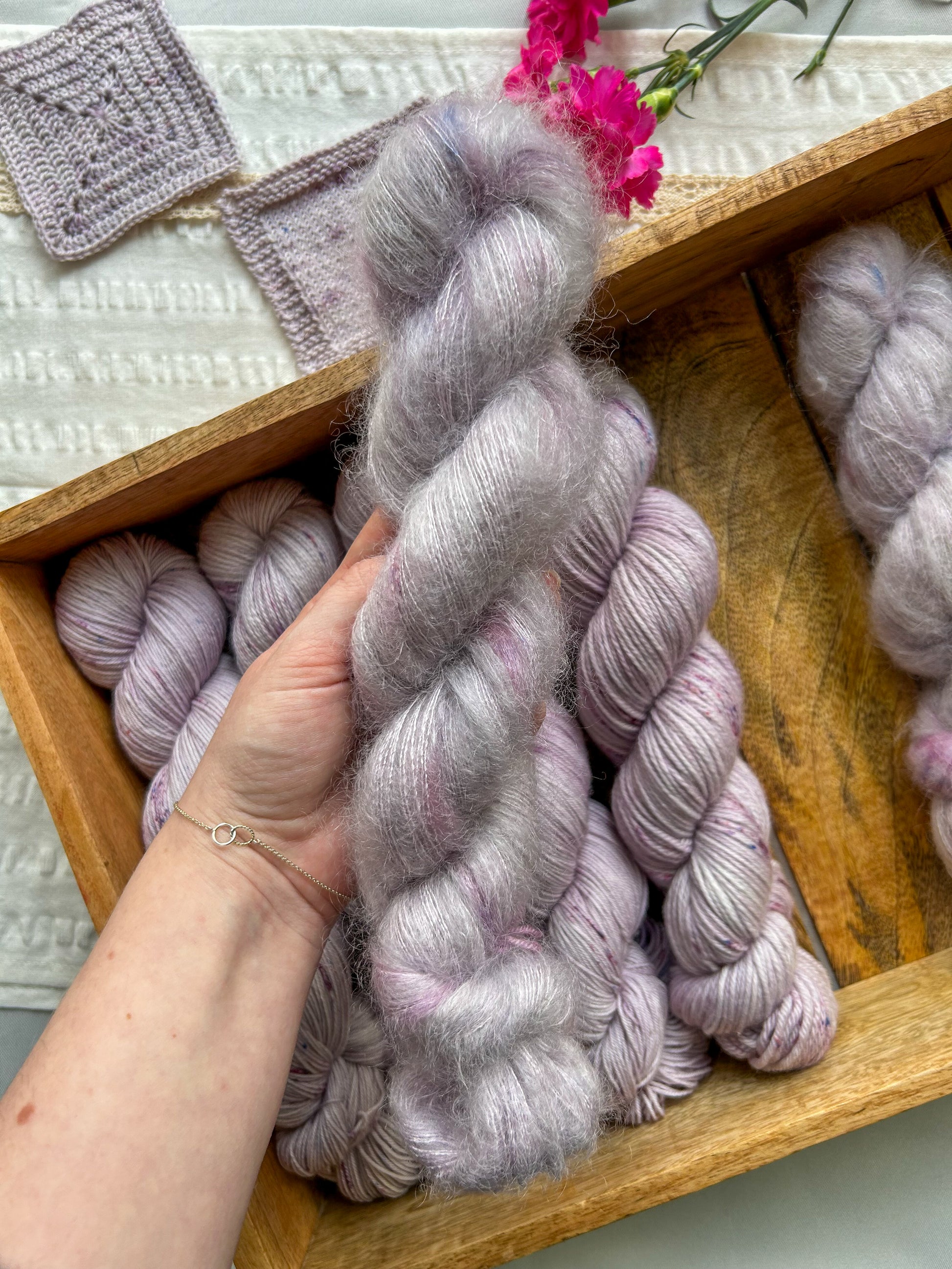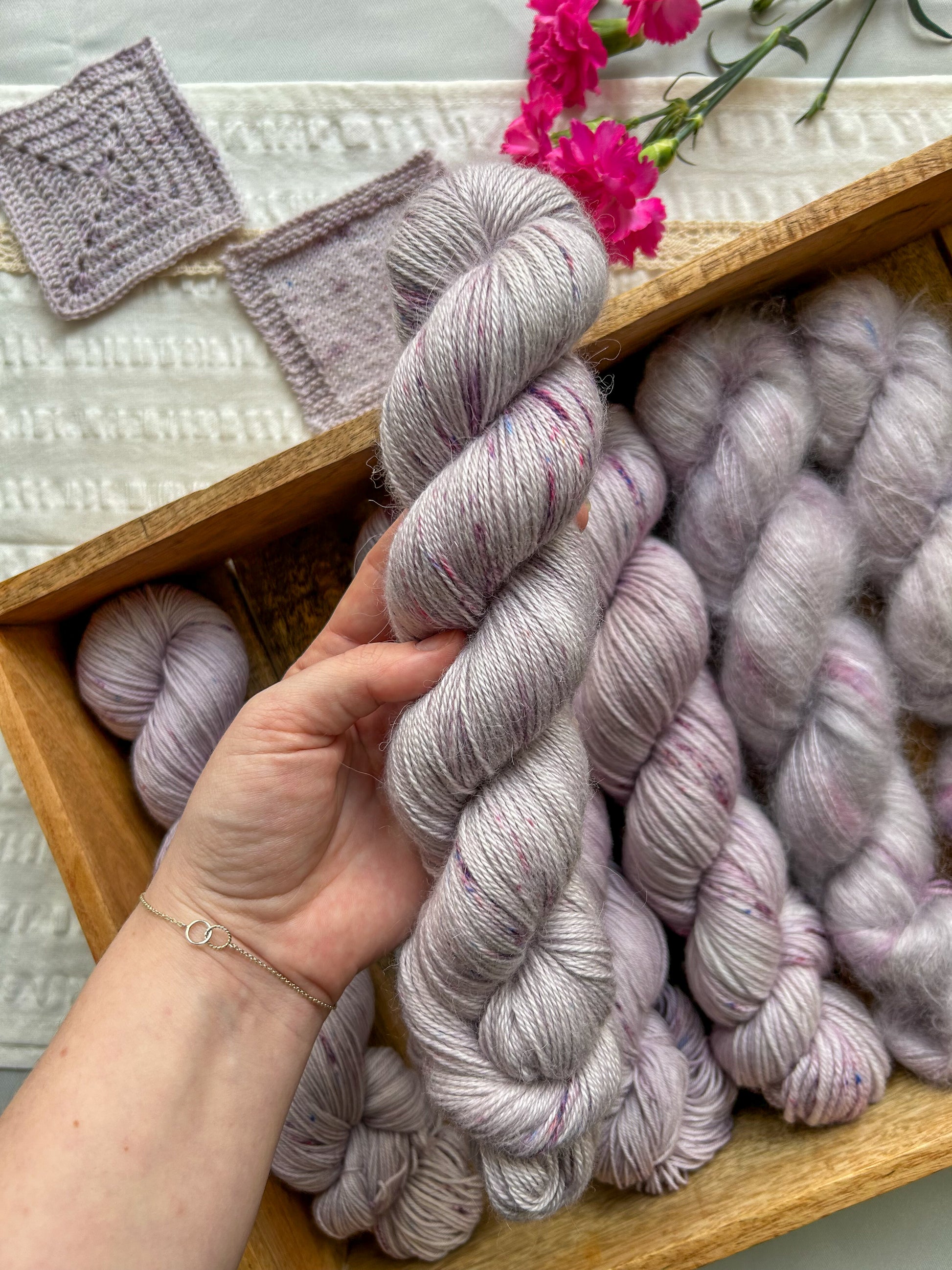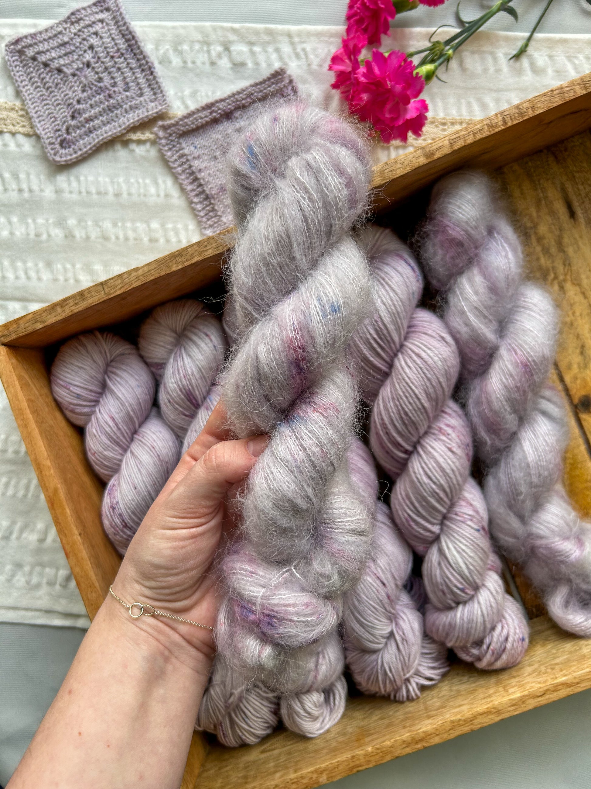 During the dye process, I try my hardest to make all the skeins as similar as possible but since this is a handmade product this also means that every skein is one of a kind.
