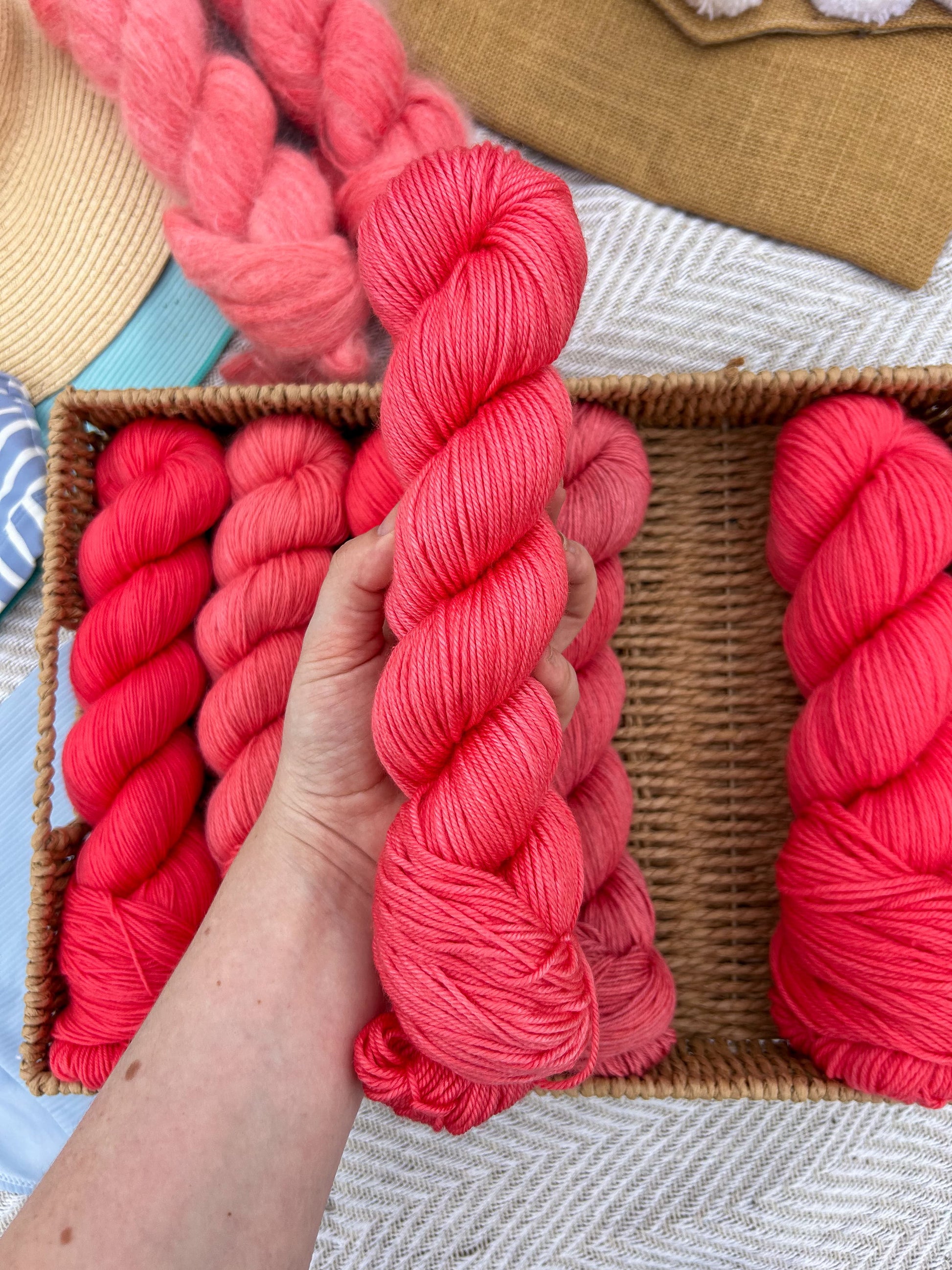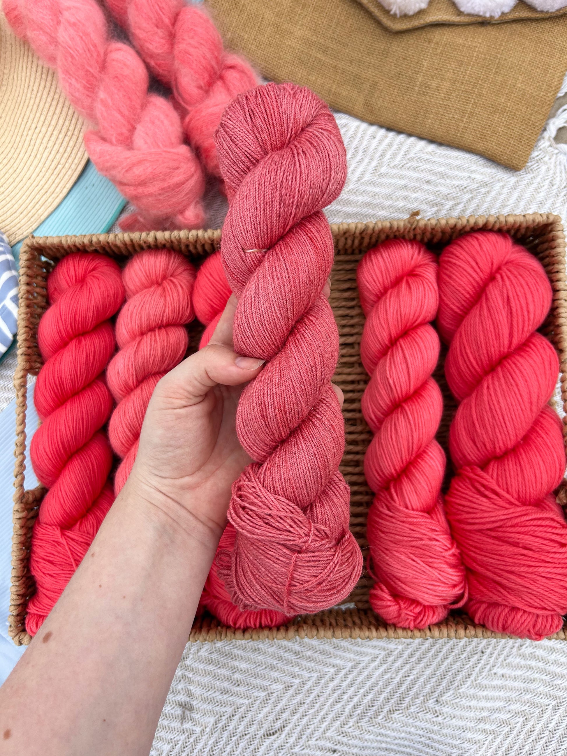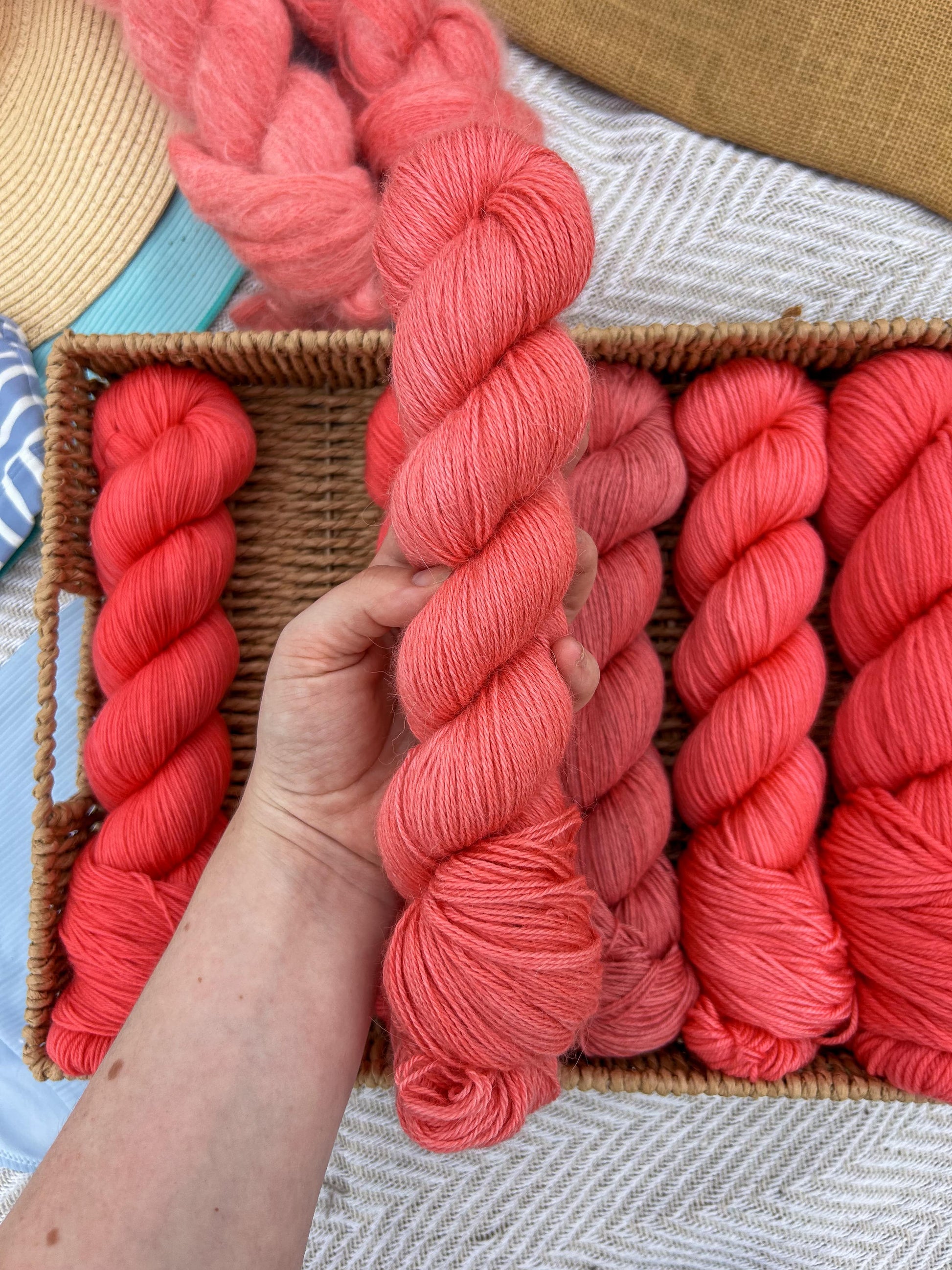 To the nature of hand-dyed yarn, some of these yarns can bleed during their first wash. Make sure to hand wash the projects individually in cold water.